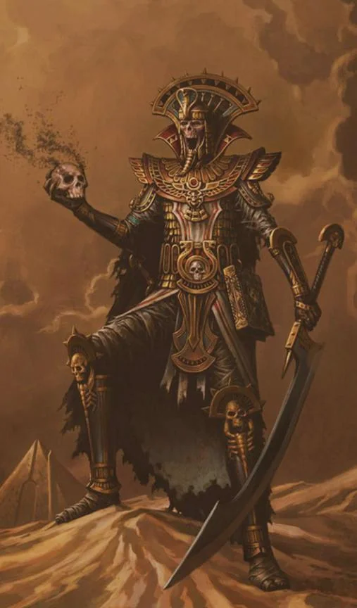 Settra... Great King, the Imperishable, Khemrikhara, The Great King of Nehekhara, King of Kings, Opener of the Way, Wielder of the Divine Flame, Punisher of Nomads, The Great Unifier, Commander of the Golden Legion, Sacred of Appearance, Bringer of Light, Father of Hawks, Builder of Cities, Protector of the Two Worlds, Keeper of the Hours, Chosen of Ptra, High Steward of the Horizon, Sailor of the Great Vitae, Sentinel of the Two Realms, The Undisputed, Begetter of the Begat, Scourge of the Faithless, Carrion-feeder, First of the Charnel Valley, Rider of the Sacred Chariot, Vanquisher of Vermin, Champion of the Death Arena, Mighty Lion of the Infinite Desert, Emperor of the Shifting Sands, He Who Holds The Sceptre, Great Hawk Of The Heavens, Arch-Sultan of Atalan, Waker of the Hierotitan, Monarch of the Sky, Majestic Emperor of the Shifting Sands, Champion of the Desert Gods, Breaker of the Ogre Clans, Builder of the Great Pyramid, Terror of the Living, Master of the Never-Ending Horizon, Master of the Necropolises, Taker of Souls, Tyrant to the Foolish, Bearer of Ptra's Holy Blade, Scion of Usirian, Scion of Nehek, The Great, Chaser of Nightmares, Keeper of the Royal Herat, Founder of the Mortuary Cult, Banisher of the Grand Hierophant, High Lord Admiral of the Deathfleets, Guardian of the Charnal Pass, Tamer of the Liche King, Unliving Jackal Lord, Dismisser of the Warrior Queen, Charioteer of the Gods, He Who Does Not Serve, Slayer off Reddittras, Scarab Purger, Favoured of Usirian, Player of the Great Game, Liberator of Life, Lord Sand, Wrangler of Scorpions, Emperor of the Dunes, Eternal Sovereign of Khemri's Legions, Seneschal of the Great Sandy Desert, Curserer of the Living, Regent of the Eastern Mountains, Warden of the Eternal Necropolis, Herald of all Heralds, Caller of the Bitter Wind, God-Tamer, Master of the Mortis River, Guardian of the Dead, Great Keeper of the Obelisks, Deacon of the Ash River, Belated of Wakers, General of the Mighty Frame, Summoner of Sandstorms, Master of all Necrotects, Prince of Dust, Tyrant of Araby, Purger of the Greenskin Breathers, Killer of the False God's Champions, Tyrant of the Gold Dunes, Golden Bone Lord, Avenger of the Dead, Carrion Master, Eternal Warden of Nehek's Lands, Breaker of Djaf's Bonds... and many, many more...