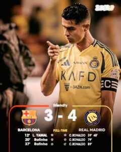 What a night, what a performance! ๐ฅ In a friendly that felt like a Champions League final ๐๐ฏ, CR7 single-handedly destroyed Barcelonaโs defense ๐ฎโ๐จ๐.