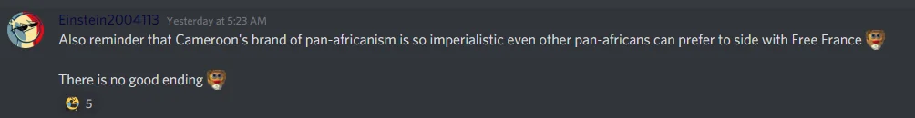 Also reminder that Cameroon's brand of pan-africanism is so imperialistic even other pan-africans can prefer to side with Free France