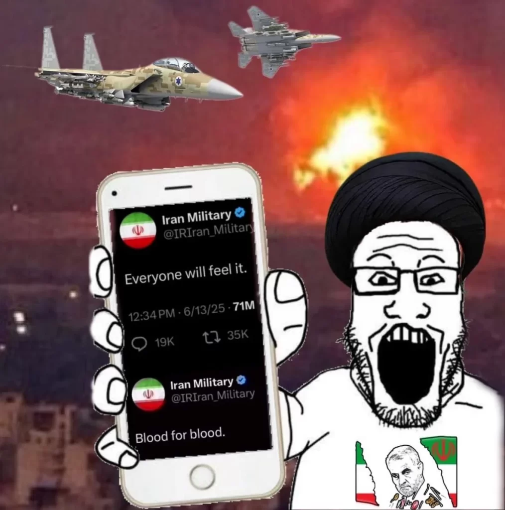 on IRAN๐ฎ๐ท. Our REAL ESTATE AGENT IN CHIEF๐ฆง๐๏ธ just wrapped his BIG HANDS (๐ซฒso big, the biggest๐ซฑ) around HO-MEINIโs waist and gave him THE MISSLE OF JUSTICE ๐๐๐right in the OIL WELL ๐ ๐ณ๏ธ ๐ ๐๐ฝโโ๏ธwhile BIBI played with HEZBALLAHz ๐ค๐and put his WIWI ๐ฅSTRAIGHT in the๐WHORE-MUZ๐for some IRON DOME ๐ซจ. It be REGIME CHANGE SZN bitchezz ๐ซฆand we givin the DICK๐๐๐ป to DICK-TATORz. Send ๐this to ๐ of your closest ALLIES or get ur CUNTRY invaded